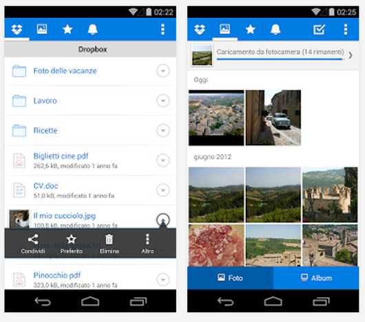 Dropbox serve per salvare online, su cloud, i propri documenti, le proprie foto, i propri video. Penso sia uno degli strumenti più comodi per passare file da PC a smartphone, e viceversa. E, fondamentale, per conservare la propria musica e le proprie foto online risparmiando spazio sul nostro smartphone Android avendo però sempre la possibilità di accedervi.