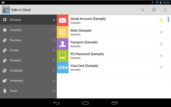 eWallet è un’app per gestire password e tante credenziali in maniera sicura e comoda; l’applicazione costa attualmente 7,77€ ma ci offre una ottima interfaccia con tanto di immagini e ricreazioni virtuali delle nostre carte, un timeout dopo il quale il nostro archivio viene bloccato per evitare perdite di dati, una sincronizzazione anche selettiva e tante altre funzionalità avanzate. Nonostante il prezzo un po’ più alto della media eWallet è una delle app sicuramente più complete e funzionali per gestire password e offre anche la versione per Windows per accedere e gestire il nostro archivio anche da PC.