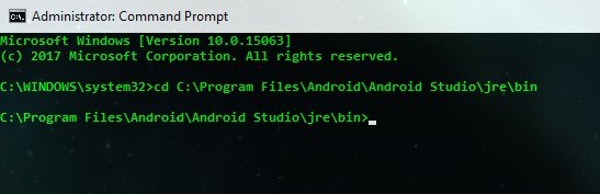 cd C:\Programmi\Android\Android Studio\jre\bin