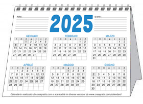 Il calendario 2026 da tavolo annuale è offerto in due versioni: la prima composta di una sola pagina da piegare in 2 parti per avere 6 mesi da ogni lato e la seconda più grande composta da 2 pagine, ognuna con 6 mesi, che all’occorrenza si può stampare anche sullo stesso foglio usando entrambi i lati dello stesso. Per la prima versione, come per il calendario da tavolo mensile, è consigliabile utilizzare un foglio di cartoncino da piegare in 2 parti ed usare come base del calendario per garantirne una buona stabilità.