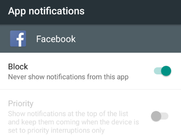 Basta impostare l’interruttore “Blocca” sulle notifiche per impedire all’app di mostrare le proprie notifiche. La seconda voce, “Priorità”, non è adesso importante: serve per mostrare sempre le notifiche di una certa app, anche quando il telefono è in modalità “Non disturbare”.