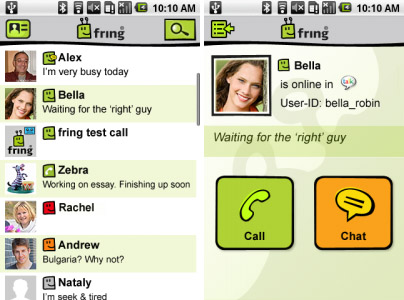 Un’altra alternativa ancora per effettuare chiamate dal nostro tablet Android ci viene offerta da Fring, un client VOIP esistente già da diversi anni e che offre tariffazioni però differenti dai primi due servizi; per le chiamate ai fissi siamo intorno ai 3 centesimi al minuto che salgono fino a 27 centesimi circa al minuto: tariffe in generale lievemente più care dei due servizi precedenti ma comunque un ottimo servizio specie se avessimo magari problemi con Skype o Talkatone. Qualità audio invece in linea con le app precedenti, sempre adattabile alla velocità del collegamento internet.