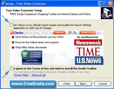 L’ installazione è molto semplice vi basterà seguire le semplici instruzioni, vi consiglio però di non installare una inutile toolbar deselezionando le due voci quando vi si presenterà questa finestra: