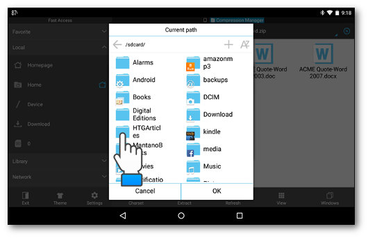 Comparirà la finestra “Estrai” e il nome predefinito sarà lo stesso del file zip. Se volete cambiarlo, basta rinominare il file nella casella corrispondente. (Attenzione: con My Files dovrete per forza estrarre tutti i file di una cartella zip, non potrete sceglierne solo alcuni).
