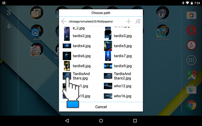 Il procedimento è identico a quello precedente, da adesso in poi. Si sceglie l’applicazione da utilizzare per selezionare la nuova immagine di sfondo.