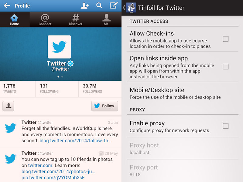Chiudiamo la nostra rassegna delle migliori 5 app twitter gratis per Android con Tinfoil for Twitter: una vera e propria replica della app ufficiale di Twitter, con una serie di aggiunte davvero molto interessanti, come la possibilità di personalizzare l’interfaccia e di ricevere direttamente sul desktop tutte le notifiche del proprio account. Inoltre Tinfoil for Twitter supporta anche i Geo-tag e la geo-localizzazione. Per concludere, si tratta di una app perfetta per chi ama l’applicazione originale di Twitter e non vorrebbe mai cambiare la sua interfaccia. Al contrario, non è esattamente l’ideale per chi cerca qualcosa di più ricco e alternativo alla app ufficiale di Twitter. Anche per l’assenza di opzioni molto importanti come la pianificazione dei tweet, ed il fatto che Tinfoil occupa molte risorse della CPU.