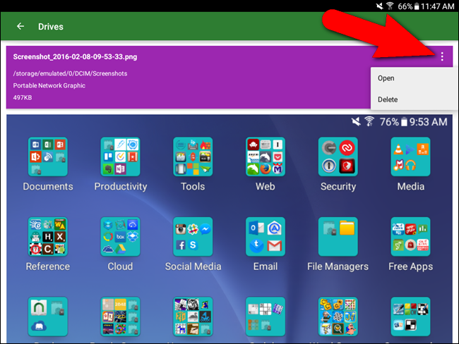 Si aprirà un riquadro con tutti i dettagli del file e, cliccando sui tre puntini, potrai decidere se aprirlo o eliminarlo.