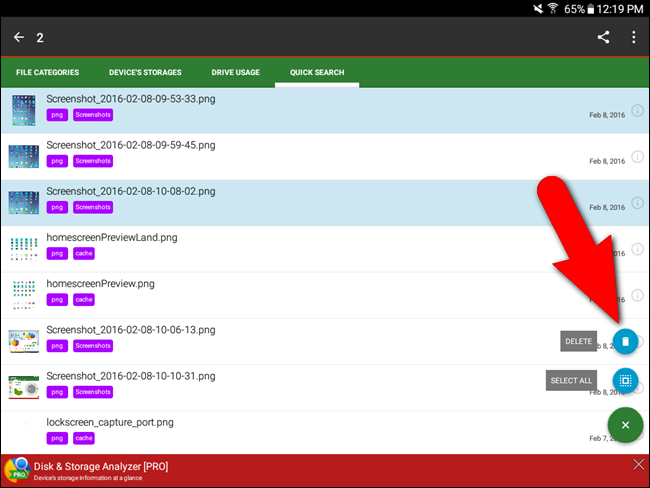 Selezioniamo PNG per sapere quanti file PNG abbiamo nella memoria del nostro telefono.